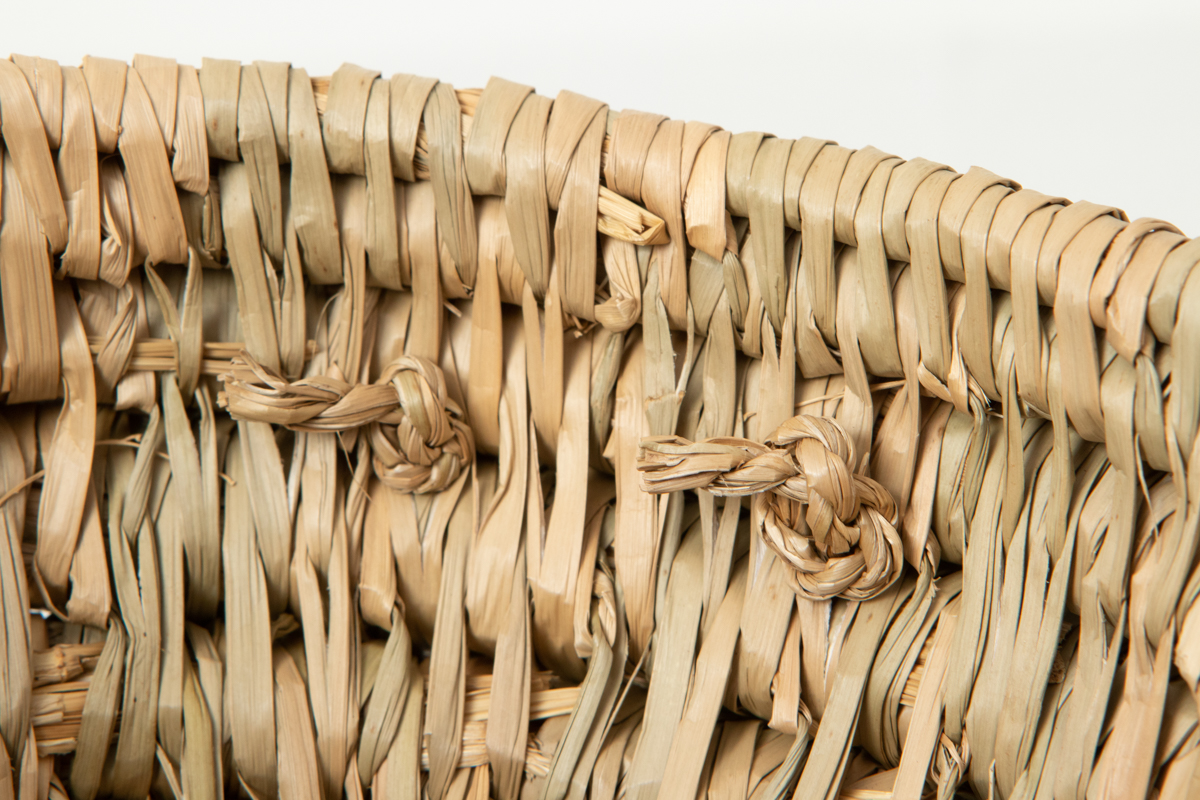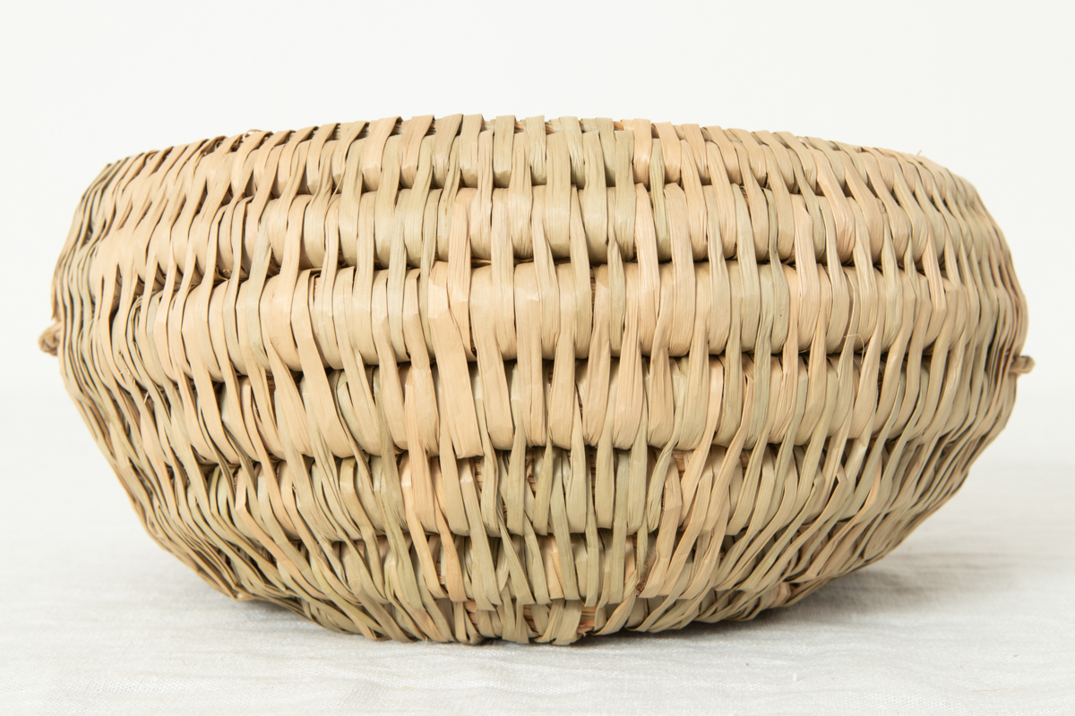 At first glance, the hole woven into the bottom of the basket may seem unusual, but according to people in the production area, it serves as ventilation. Since the basket was used both indoors and outdoors, the opening helped prevent the baby’s body heat and moisture from building up inside.The hole in the base and the handles on both sides show traces of its origin as a rice-straw cradle.