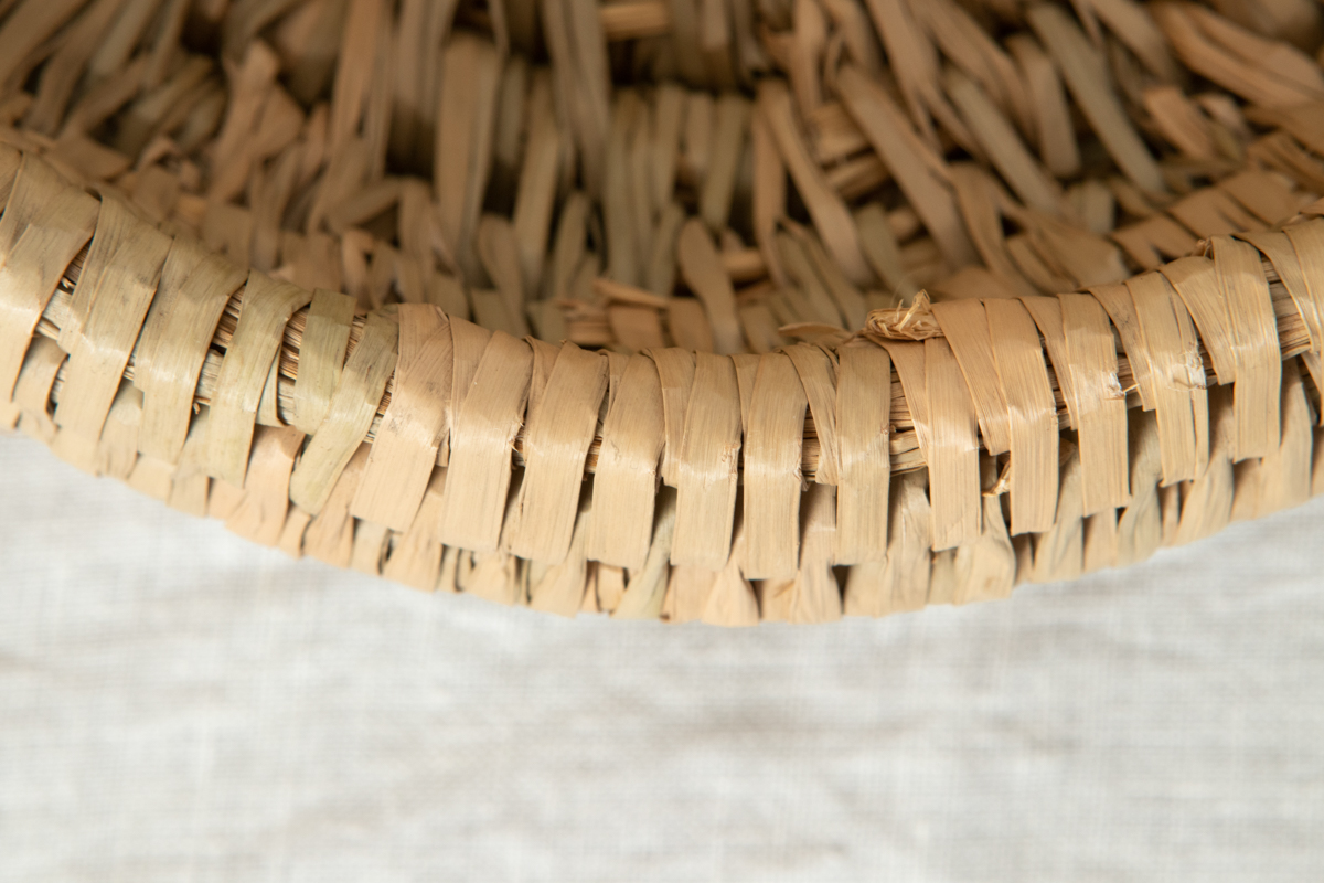 A basket born from the rice-growing culture of the Shōnai region. It is made using a rare technique in Japan called “coiling.” Coiling is a basketry method in which bundled materials are wound in a spiral and sewn together as the form is built up.