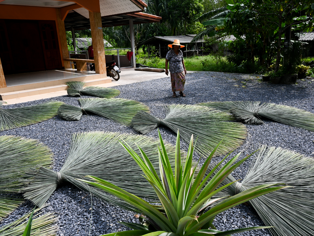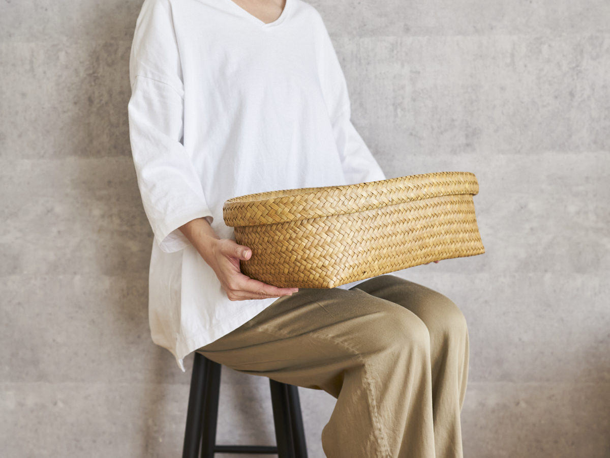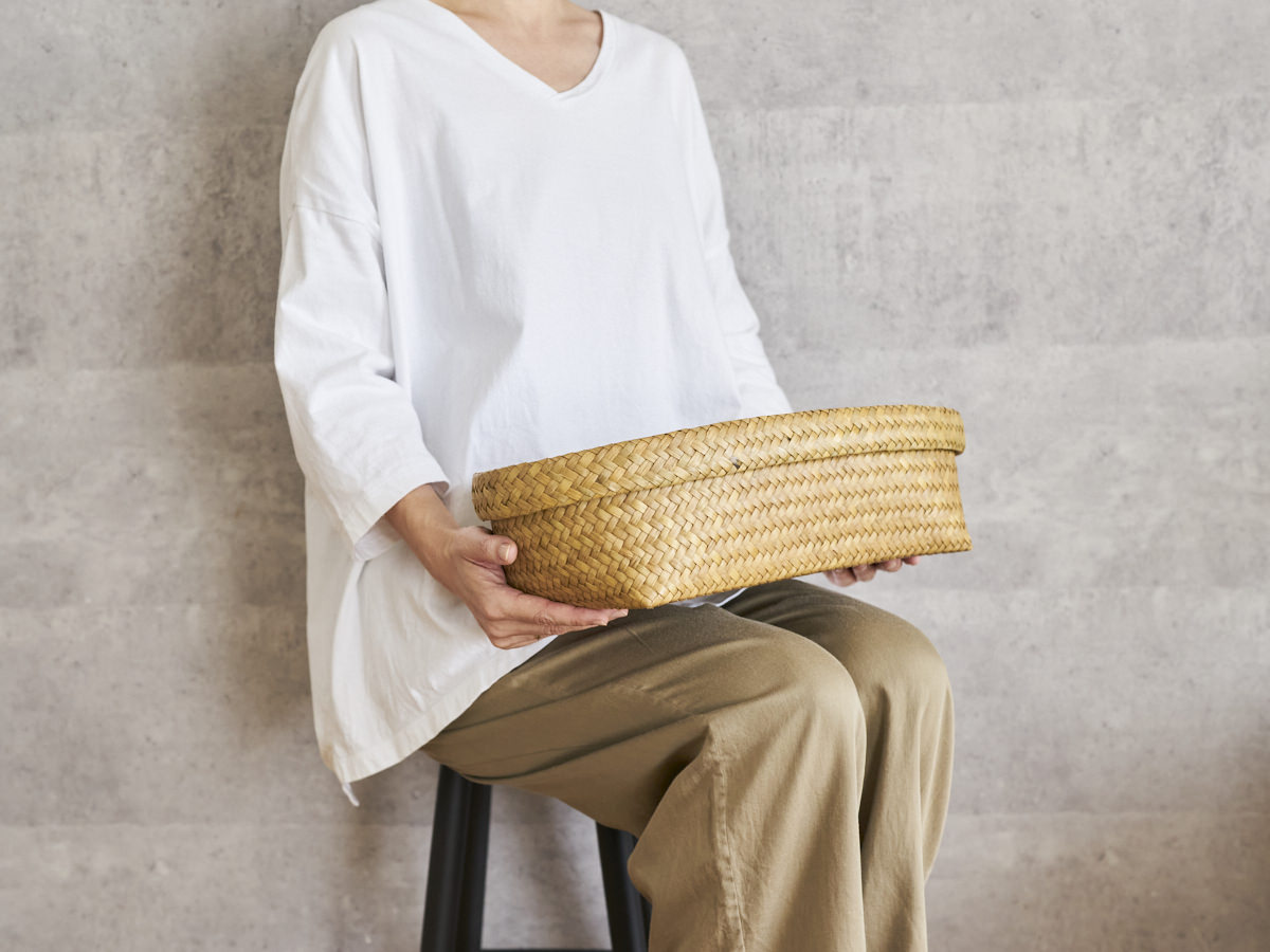 若い世代の編み手がすくないながらも、今、あらためてタイ国内でも、こうした自然素材製品のよさが見直され、若い人たちがかごを手に取るようになってきているとのこと。