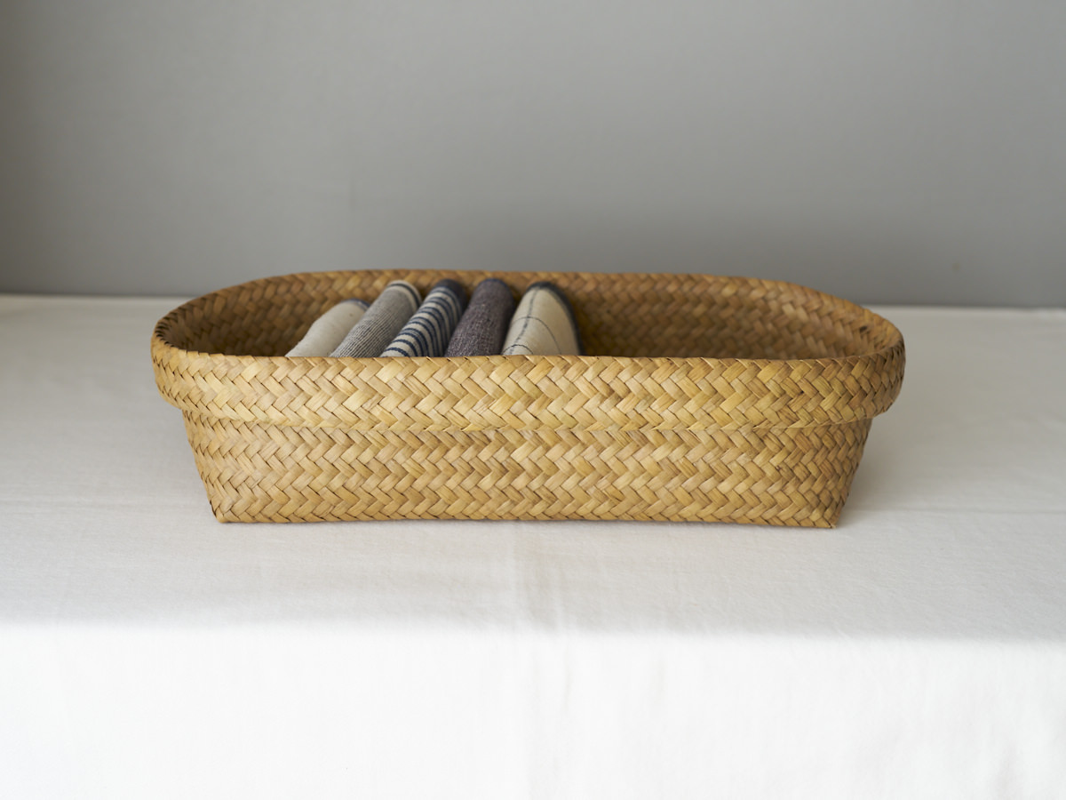 こちらは、タイ語で「カチュー」とよばれる、タイの沼地に自生する草で編まれたかごです。