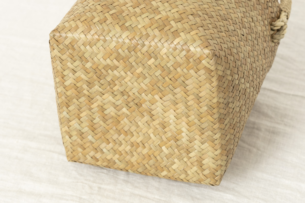 こちらは、タイ語で「カチュー」とよばれる、タイの沼地に自生する草で編まれたかごです。