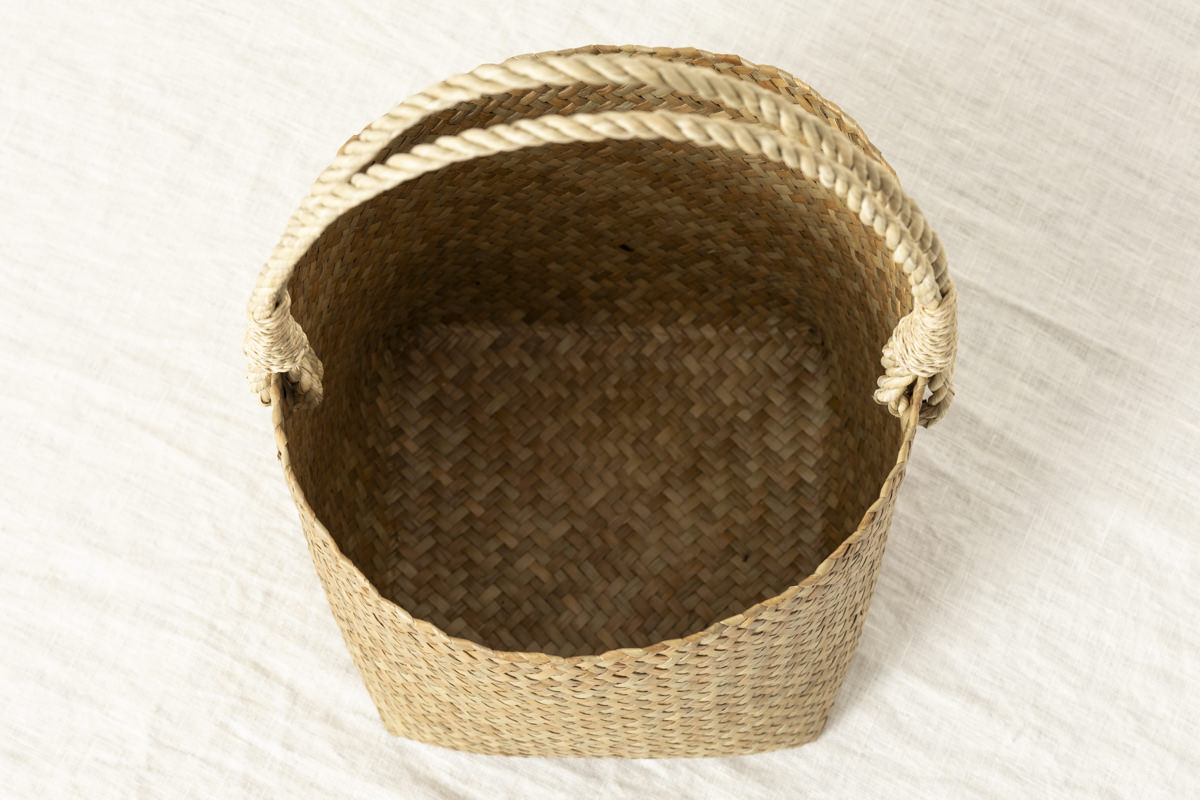 手提げとしてのほか、室内で収納かごとしても。玄関でスリッパ入れにしたり、