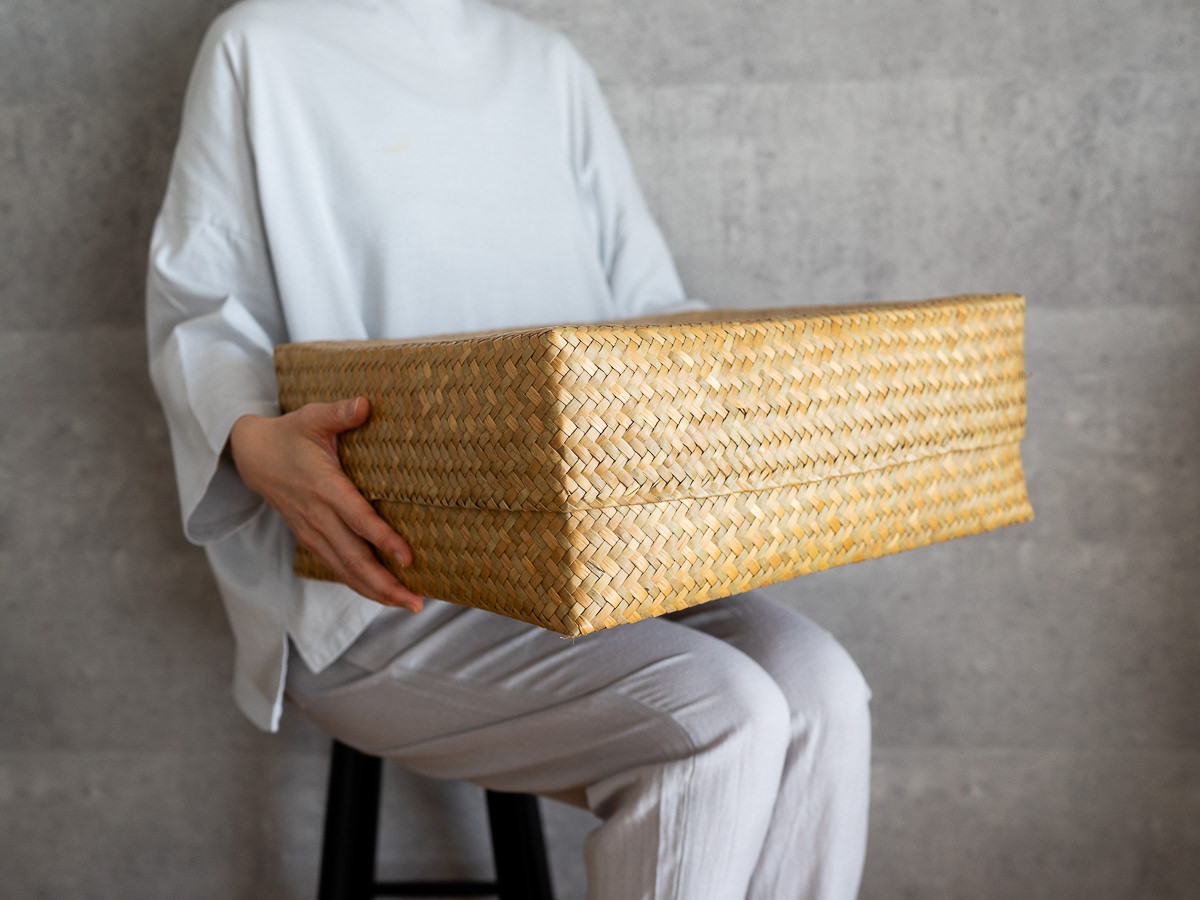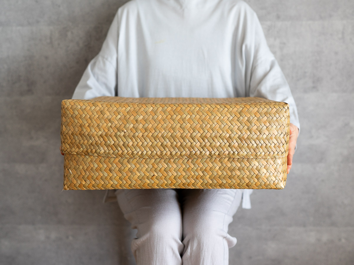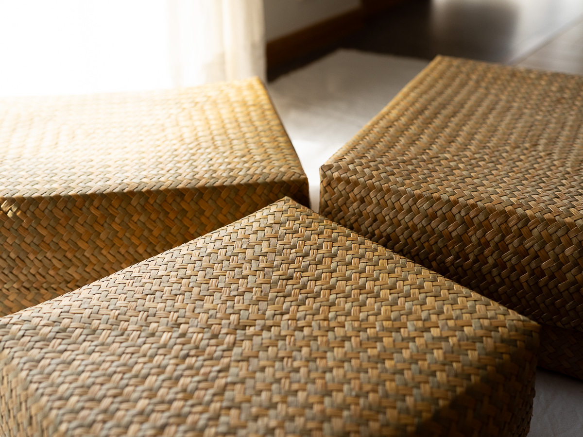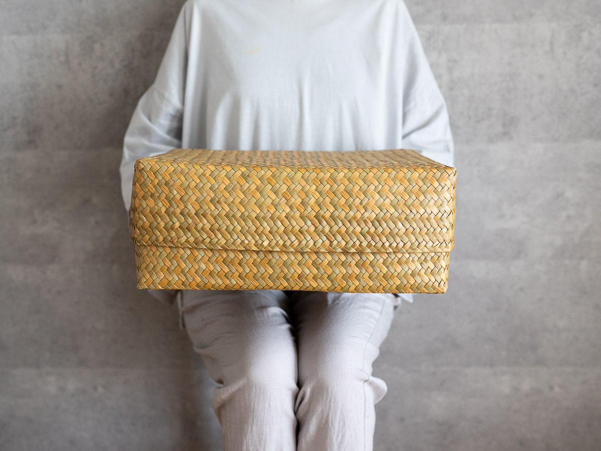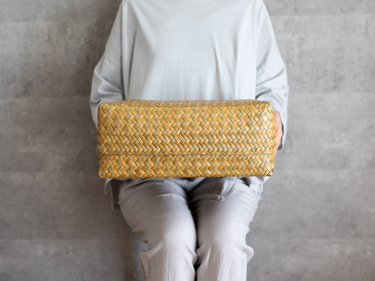 こちらは、タイ語で「カチュー」とよばれる、タイの沼地に自生する草で編まれたかごです。