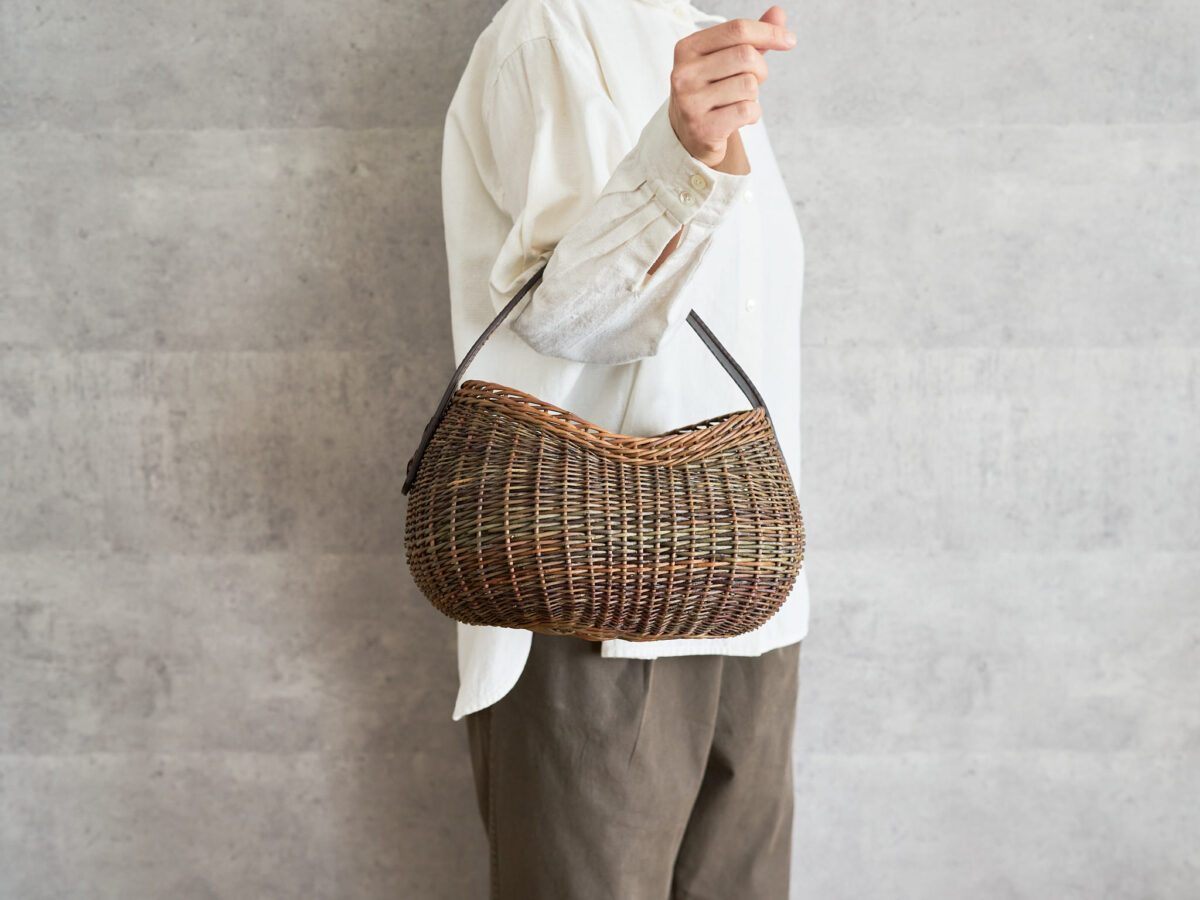 やわらかなかたちと、やなぎの自然な色合いが魅力のかごバッグです。