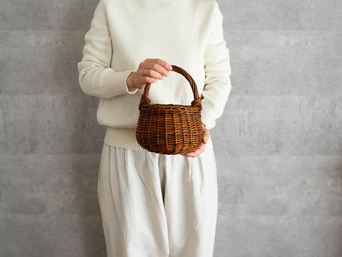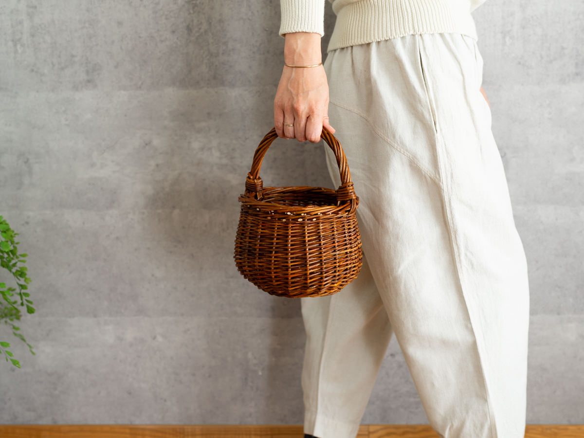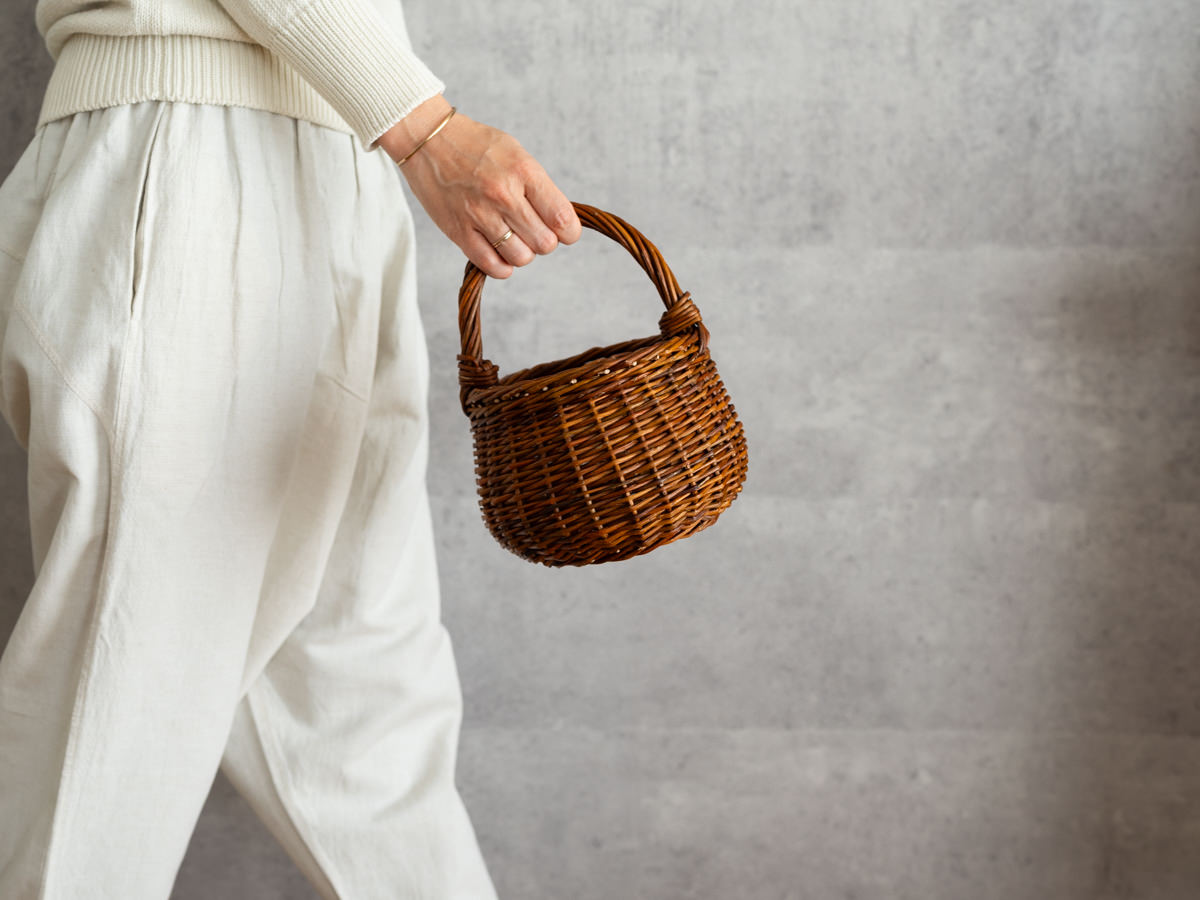 こちらは「やなぎ」を編んで作られた、持ち手付きのバスケットです。