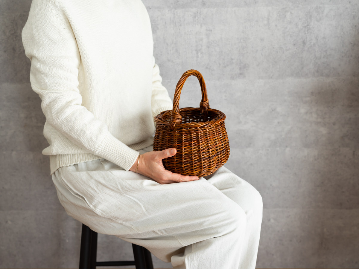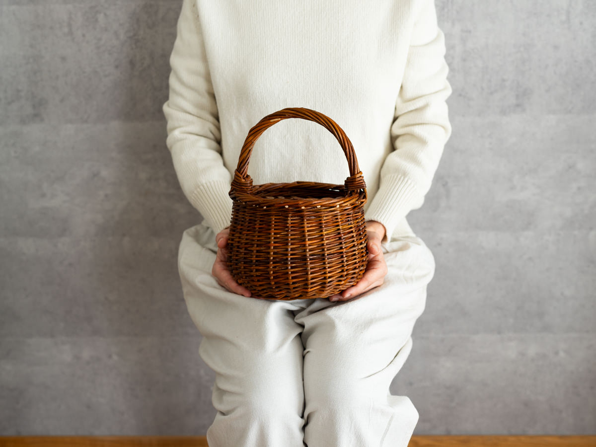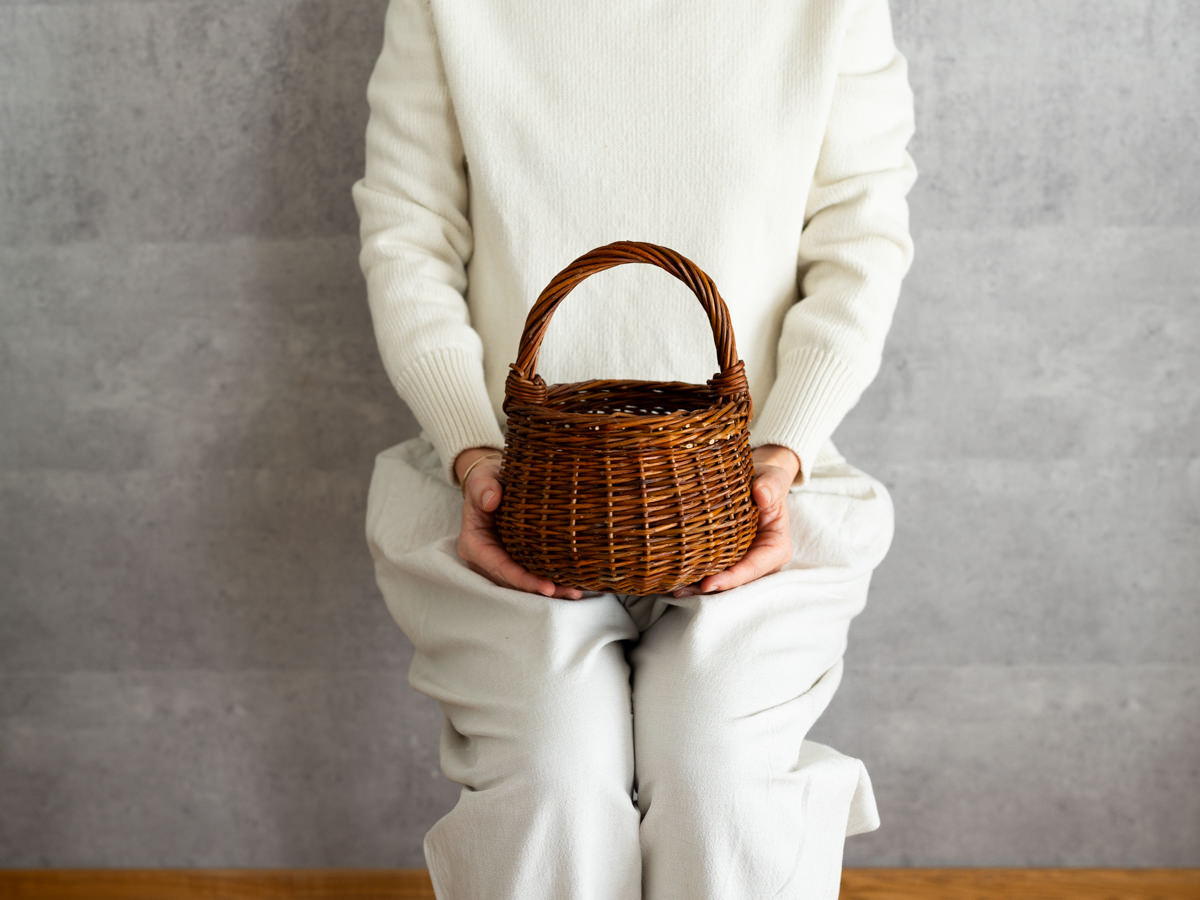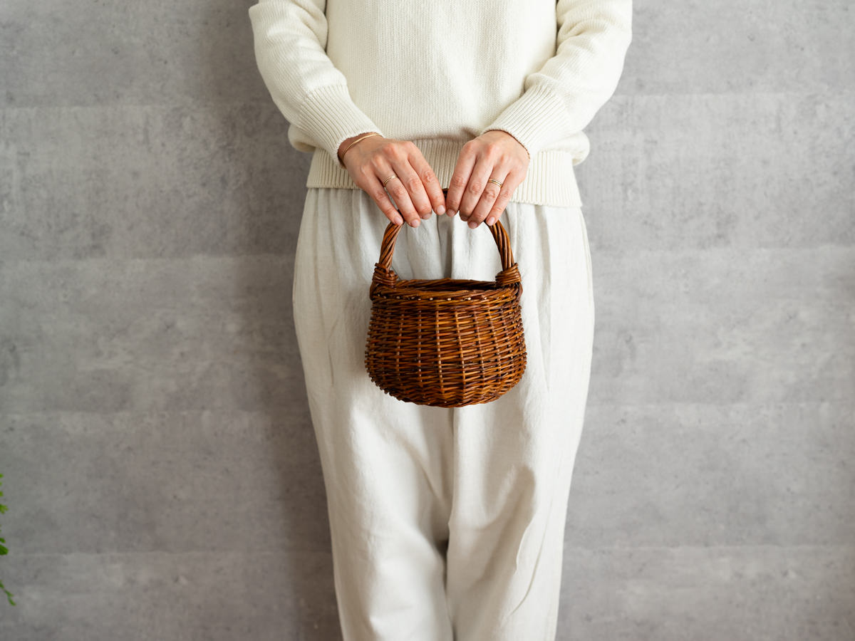 こちらは「やなぎ」を編んで作られた、持ち手付きのバスケットです。