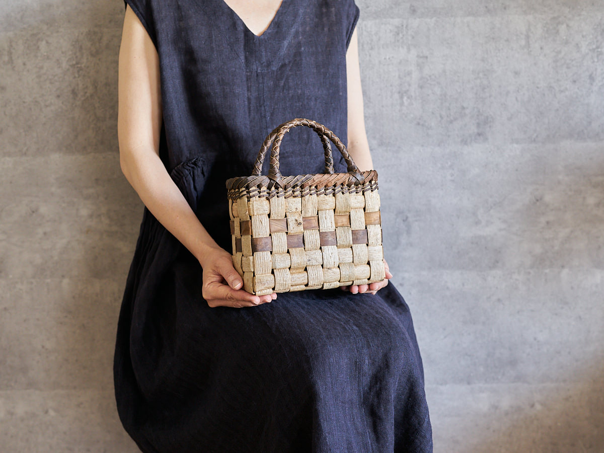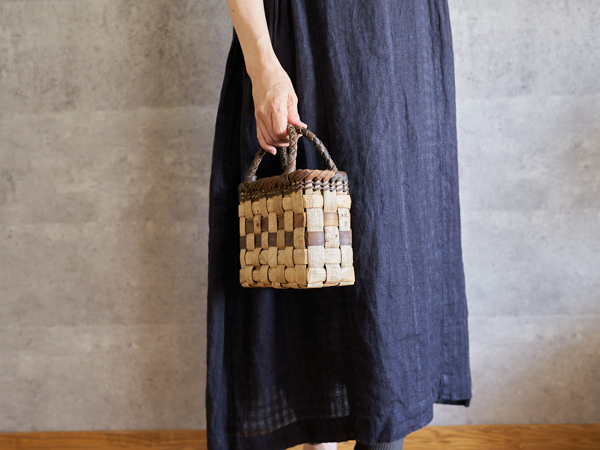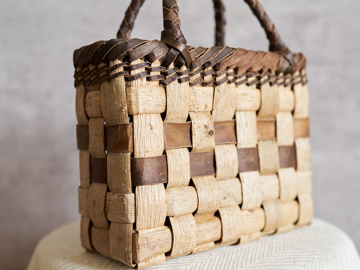 こちらでは、このくるみ樹皮を用いて作られた手提げをご紹介します。