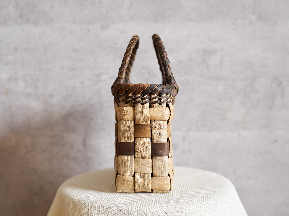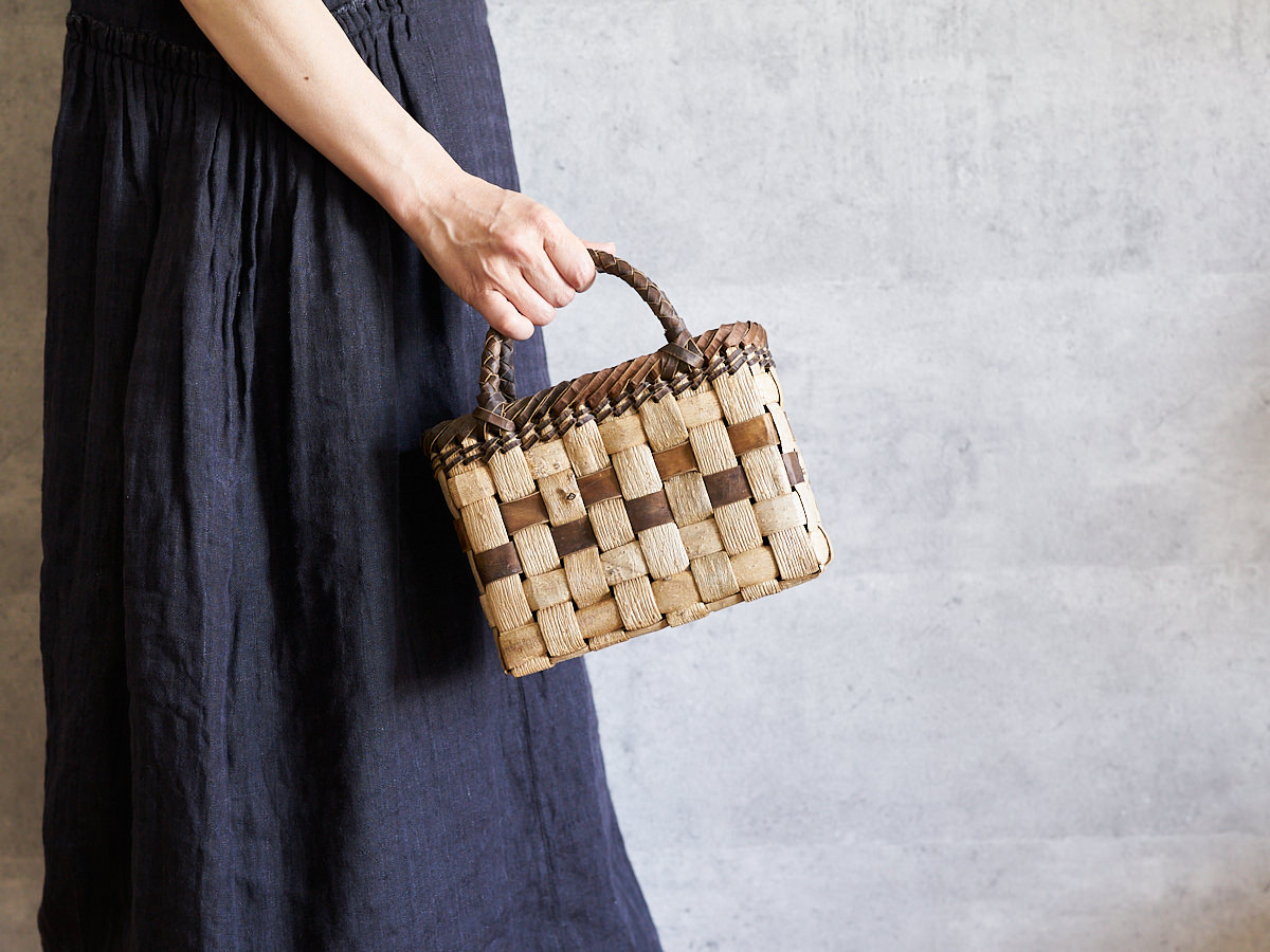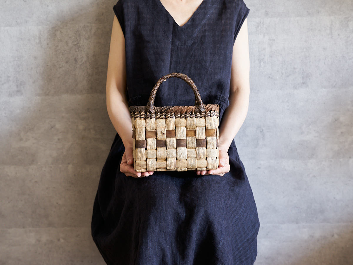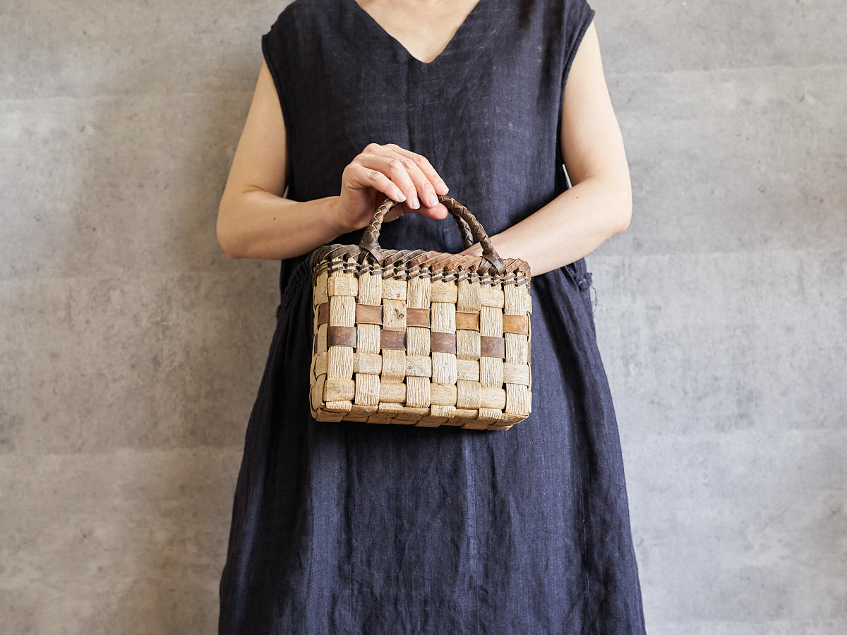 こちらでは、このくるみ樹皮を用いて作られた手提げをご紹介します。
