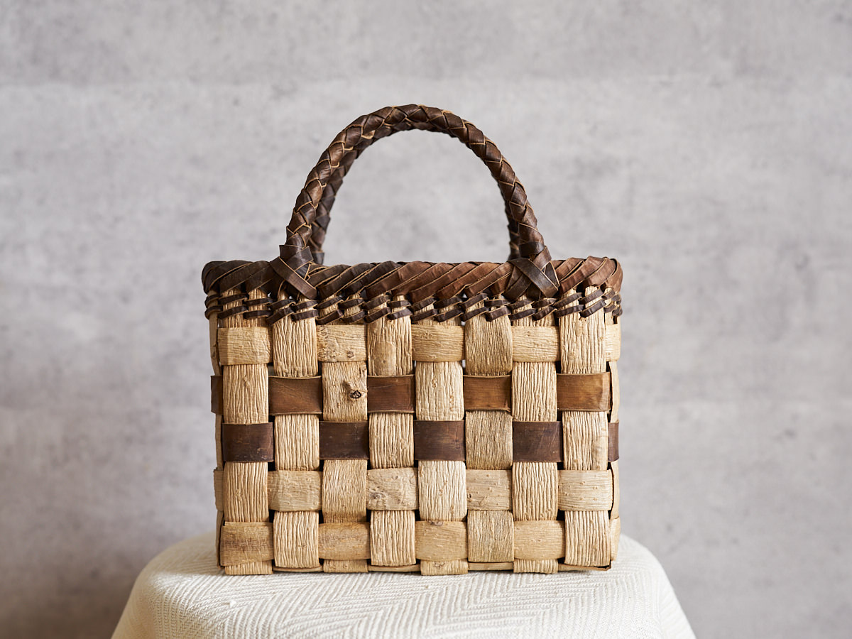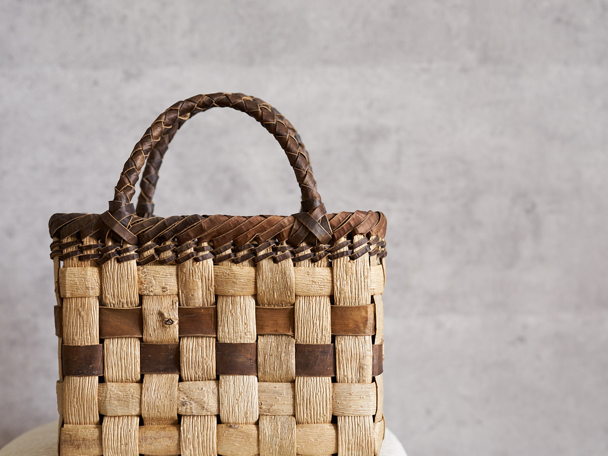 こちらは沢胡桃(さわぐるみ)の樹皮を使って編まれた手提げです。