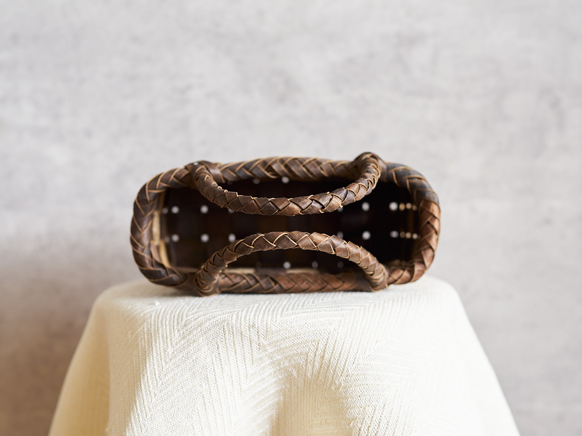 かごの内側は、外側とちょうど反対の色になります。内側はこげ茶色の裏皮になっています。