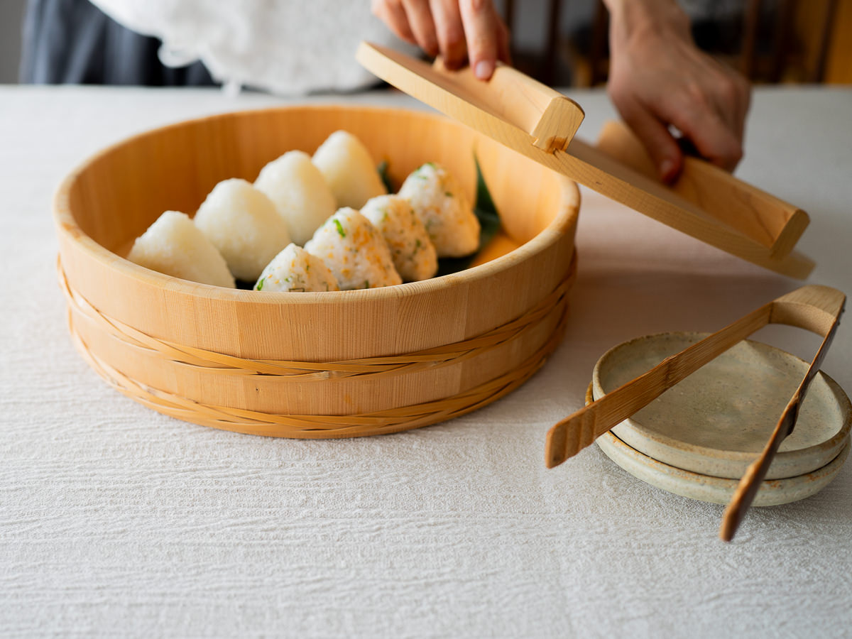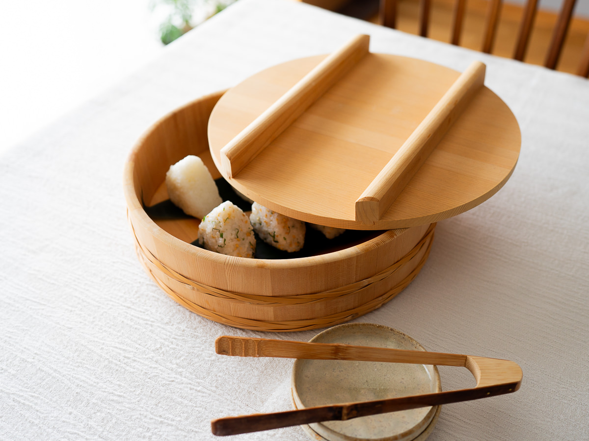 You can also simply make rice balls, place them in the handai, cover it with the lid, and keep them stored until serving. It helps maintain the right level of moisture, and when it’s time to eat, the presentation is also a pleasure to look at.