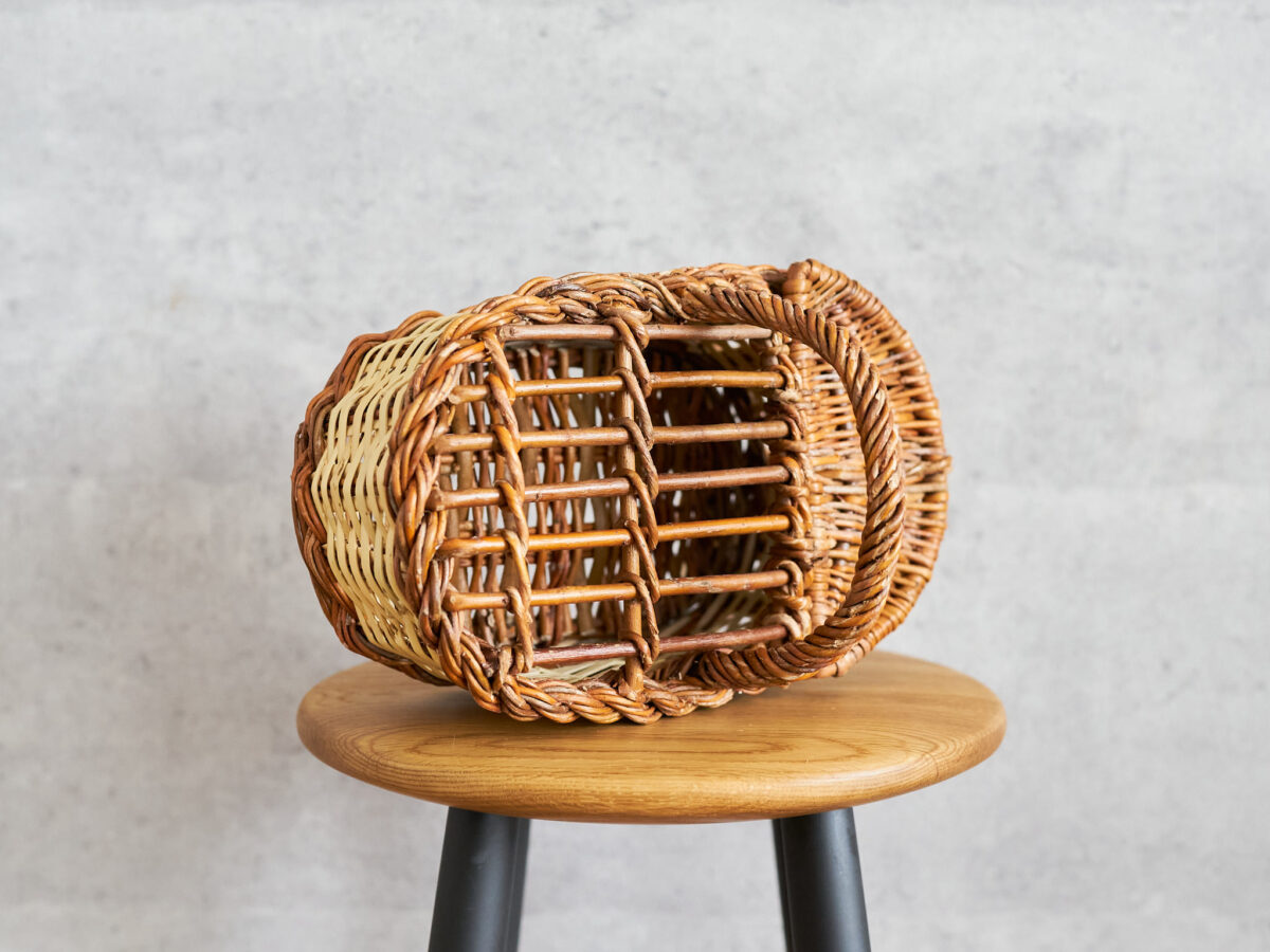 底は楕円形で太いやなぎを半割りにしたものも織り交ぜて、しっかり編まれているため、丈夫な作りになっています。