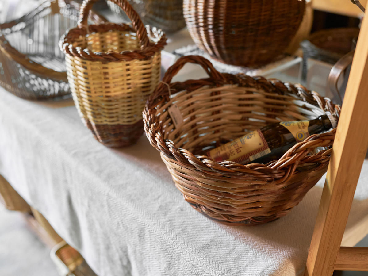 ぶどうの収穫かごや、ワインボトルのかご、ラビットバスケットなど、