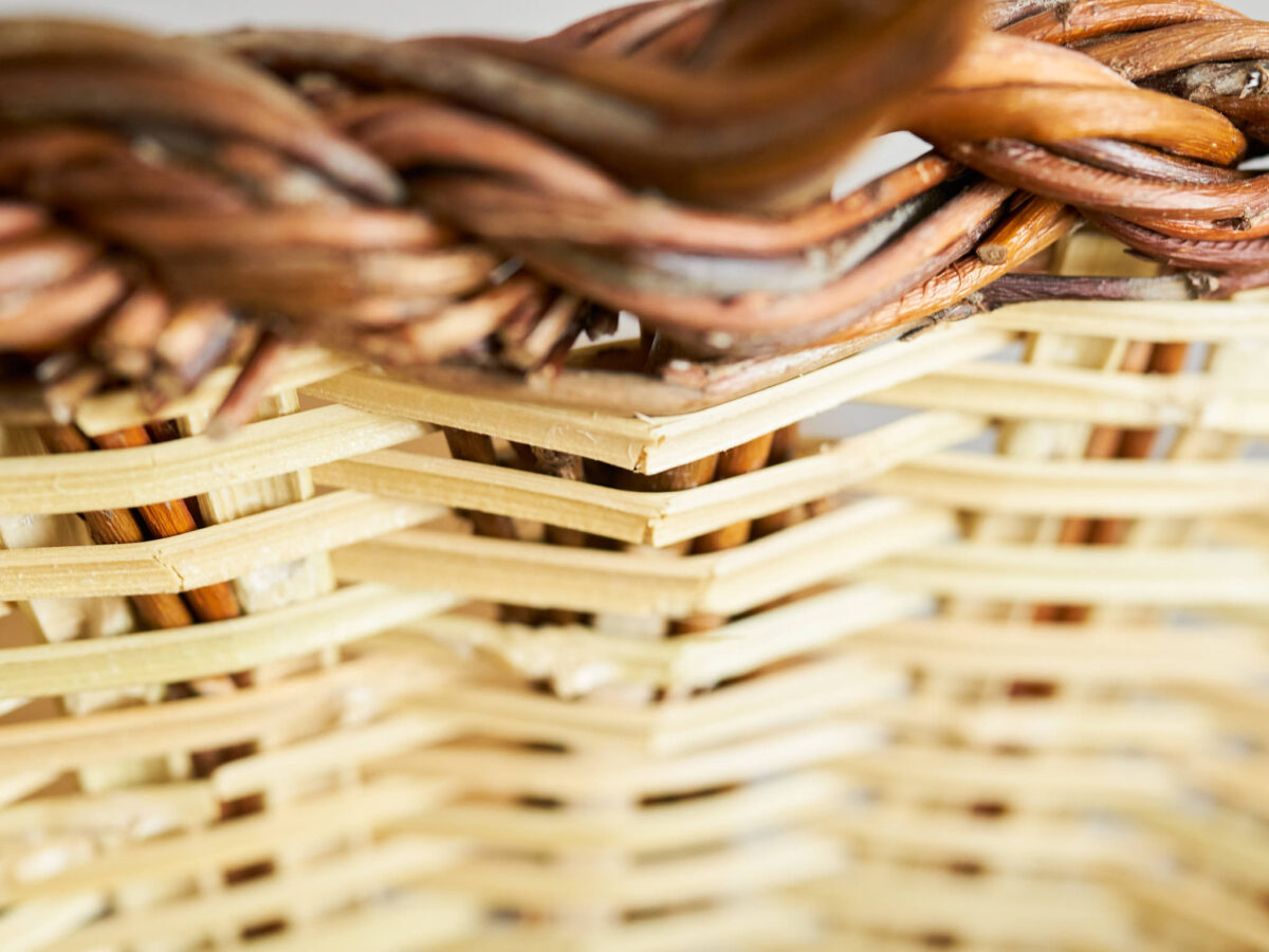こちらは、やなぎとカーニャという素材をつかって編まれたバスケットです。