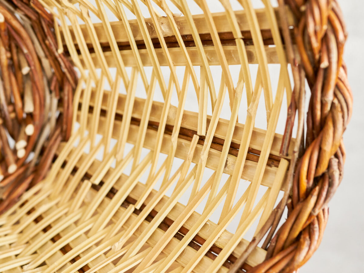 側面は明るくつやのあるカーニャで編まれています。縦骨にはやなぎ、そしてそのやなぎを支えるようにカーニャが差し込まれています。