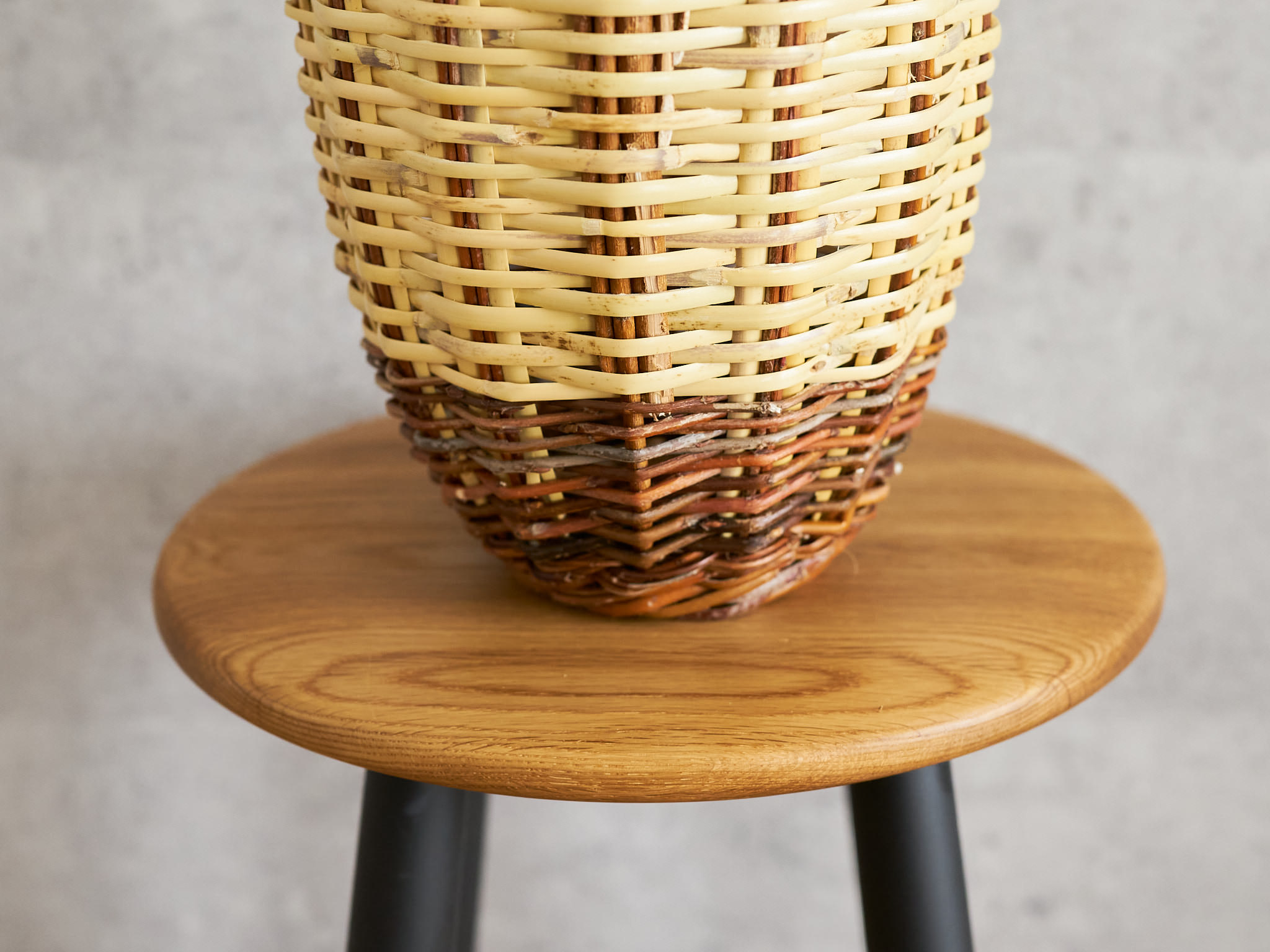 側面は明るくつやのあるカーニャで編まれています。縦骨にはやなぎ、そしてそのやなぎを支えるようにカーニャが差し込まれています。