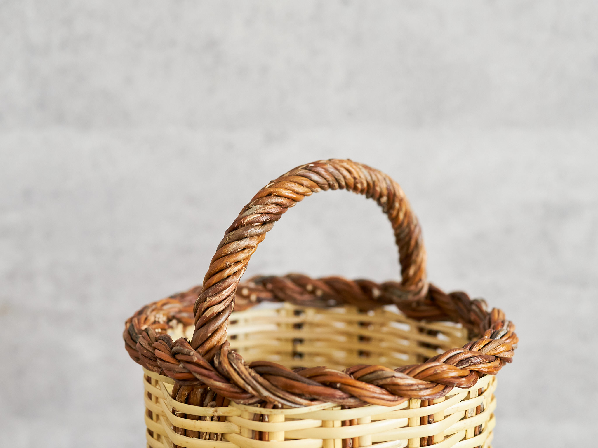こちらのページでは、シュッと高さのあるかごです。ワインやボトルを運ぶのにぴったりのサイズです。